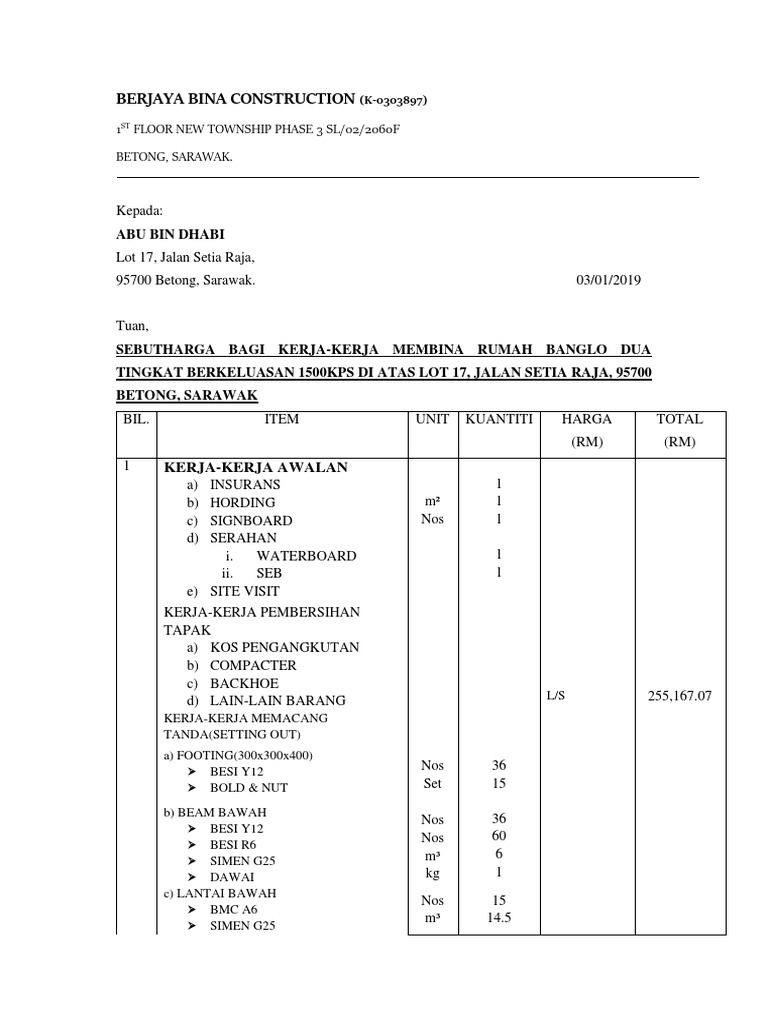 Related image with contoh sebut harga pembinaan rumah.