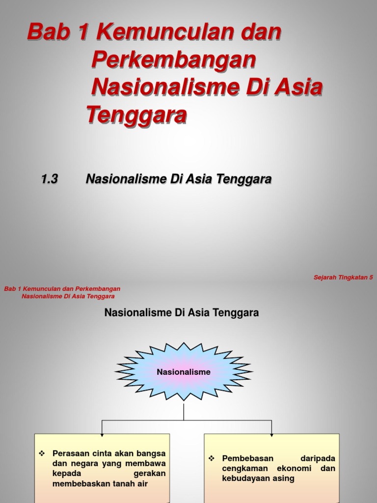 Imperialisme nasionalisme faktor2 imperialisme nasionalisme birokrasi barat kesan2 tahap2 nasionalisme perkembangan di thailand. Asia tenggara kaya dengan bahan mentah serta mempunyai tanah yang subur sesuai dengan pelbagai tanaman. Kemunculan dan perkembangan nasionalisme sehi. Corak gerakan nasionalisme di asia tenggara telah berubah dari bercorak sederhana kepada bercorak radikal. Tajuk 10.1 kemunculan dan perkembangan nasionalisme di asia tenggara.